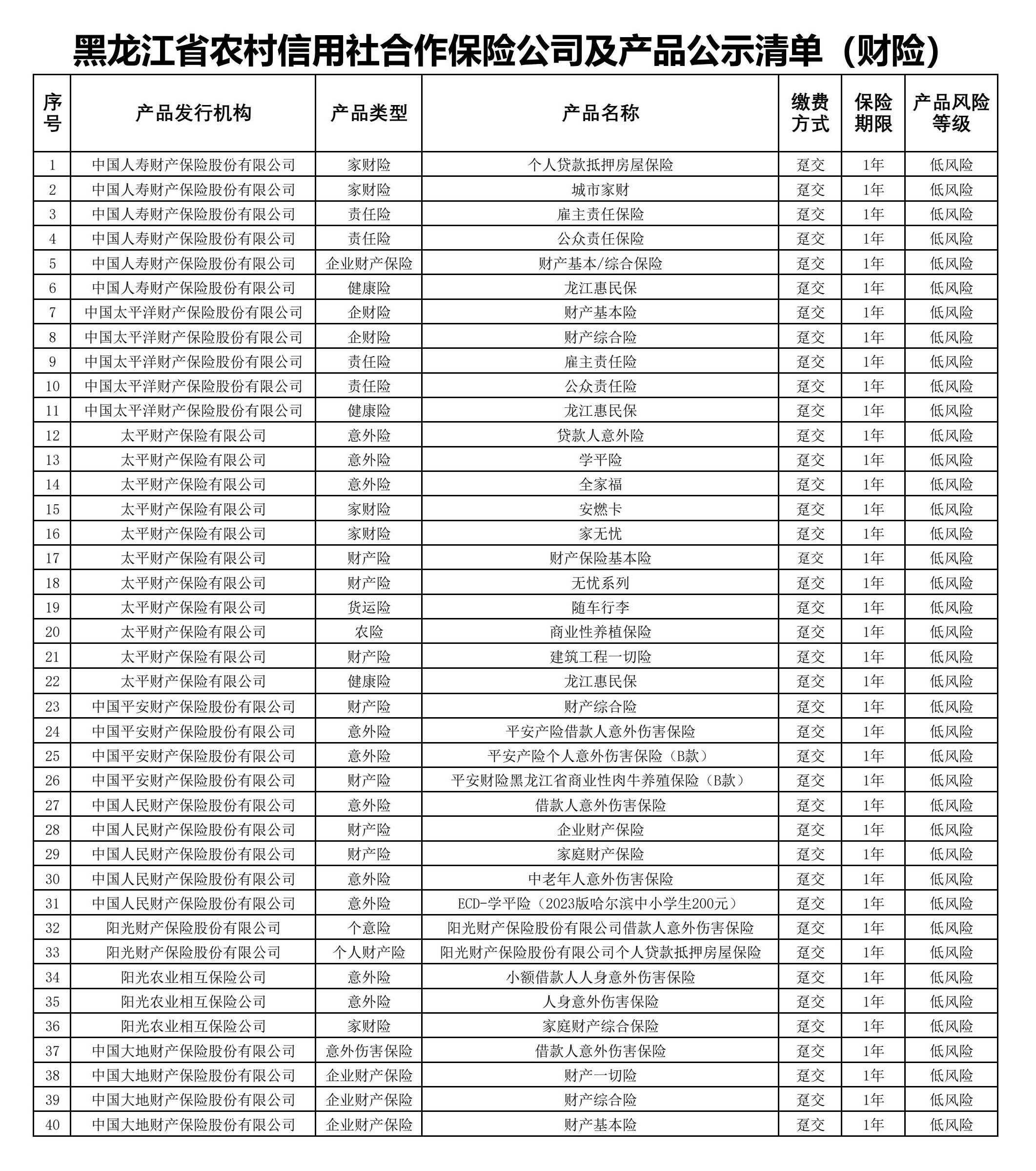 黑龙江省农村信用社代销保险产品公示清单-财险(202510)